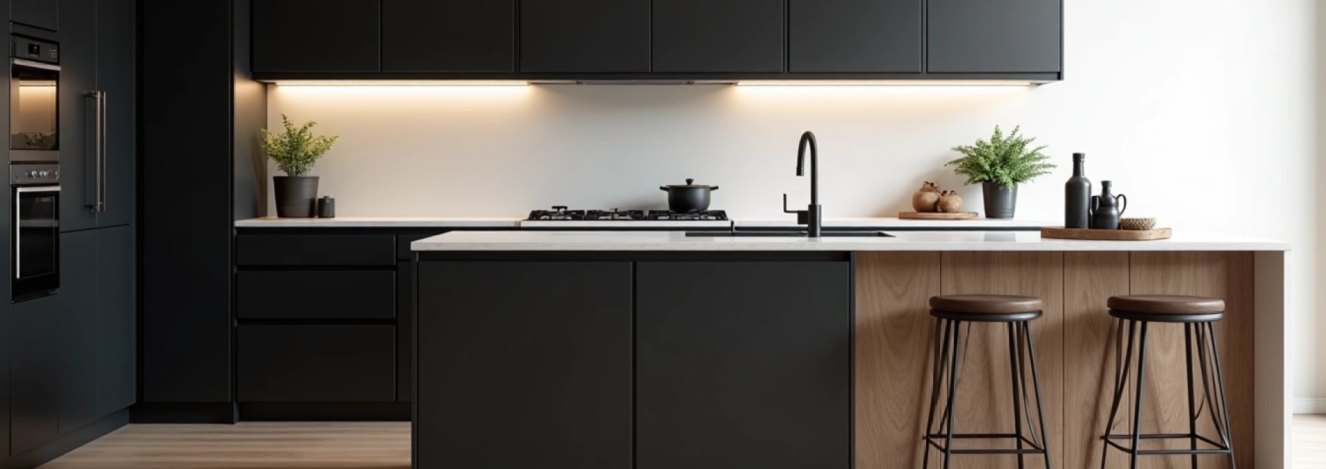 Éléments décoratifs complémentaires pour cuisine noir et bois