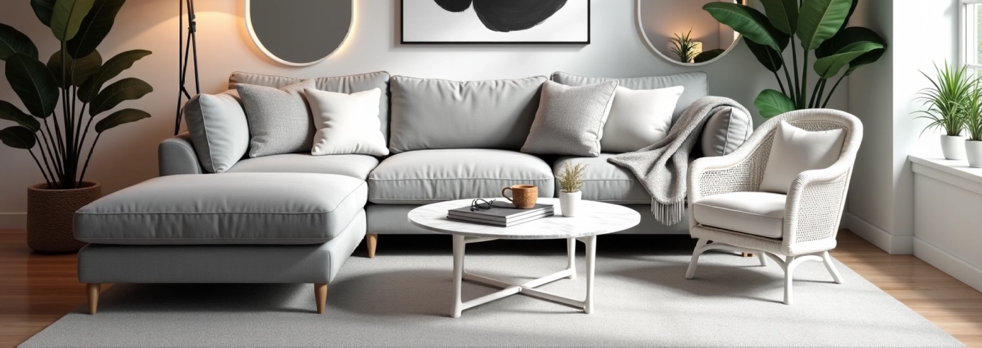 Principes de design pour un salon gris et blanc cocooning
